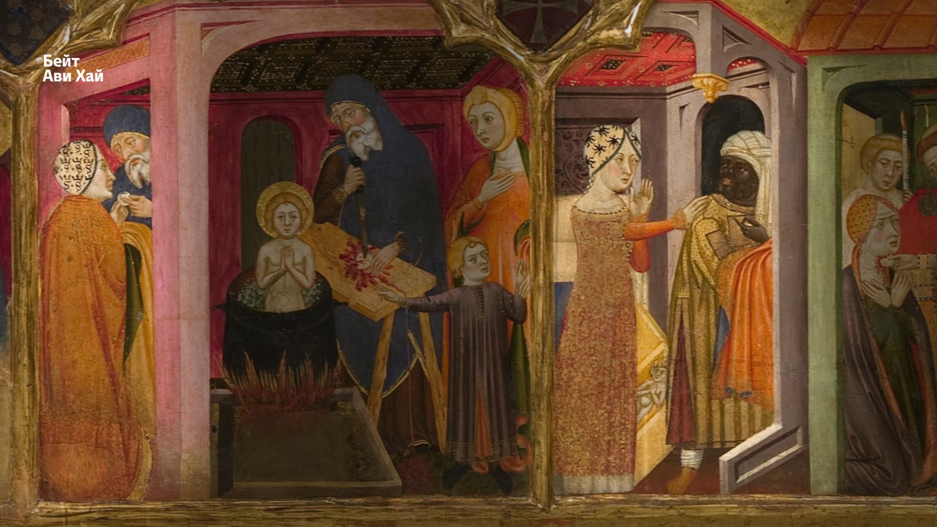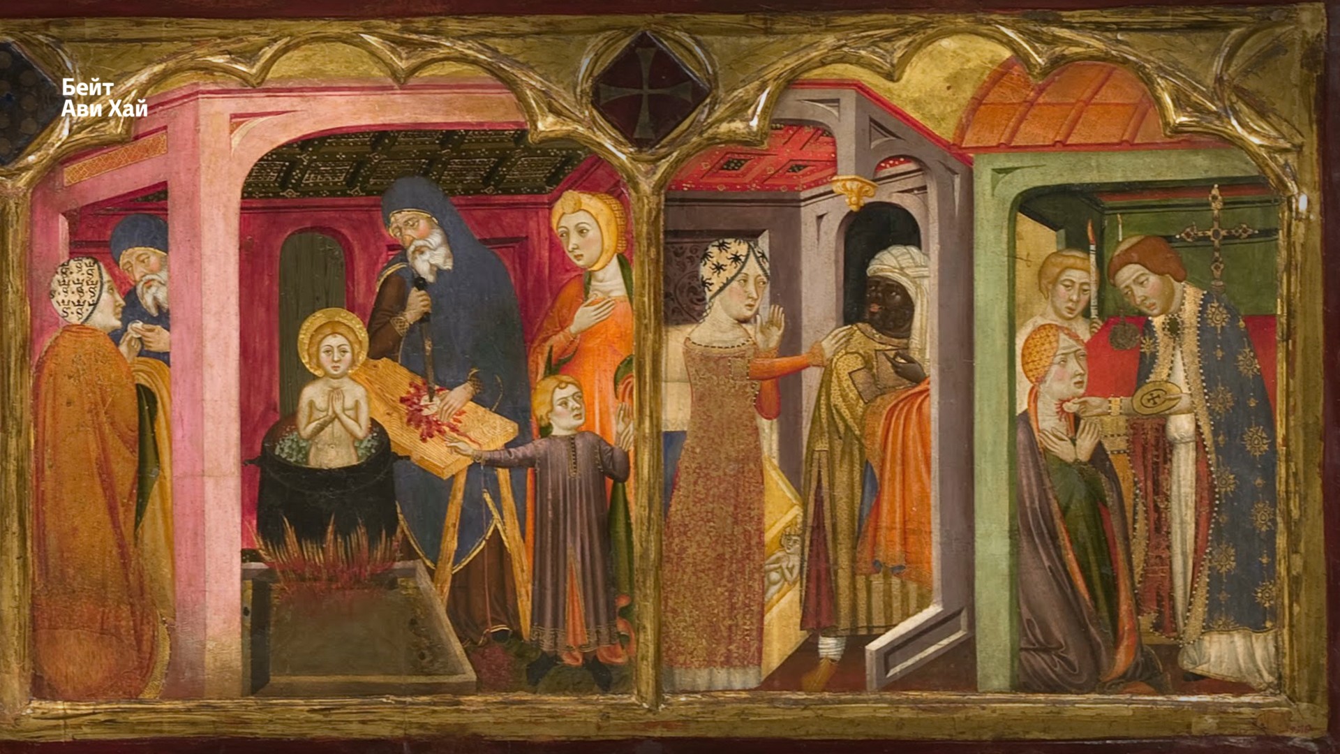 На алтарной панели из Барселоны рассказывается, как однажды одна еврейка незаконно купила гостию у одного из прихожан католической церкви.