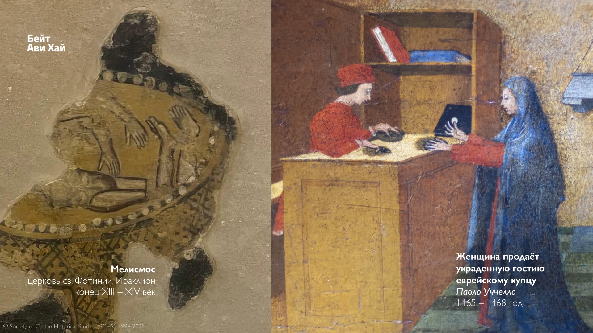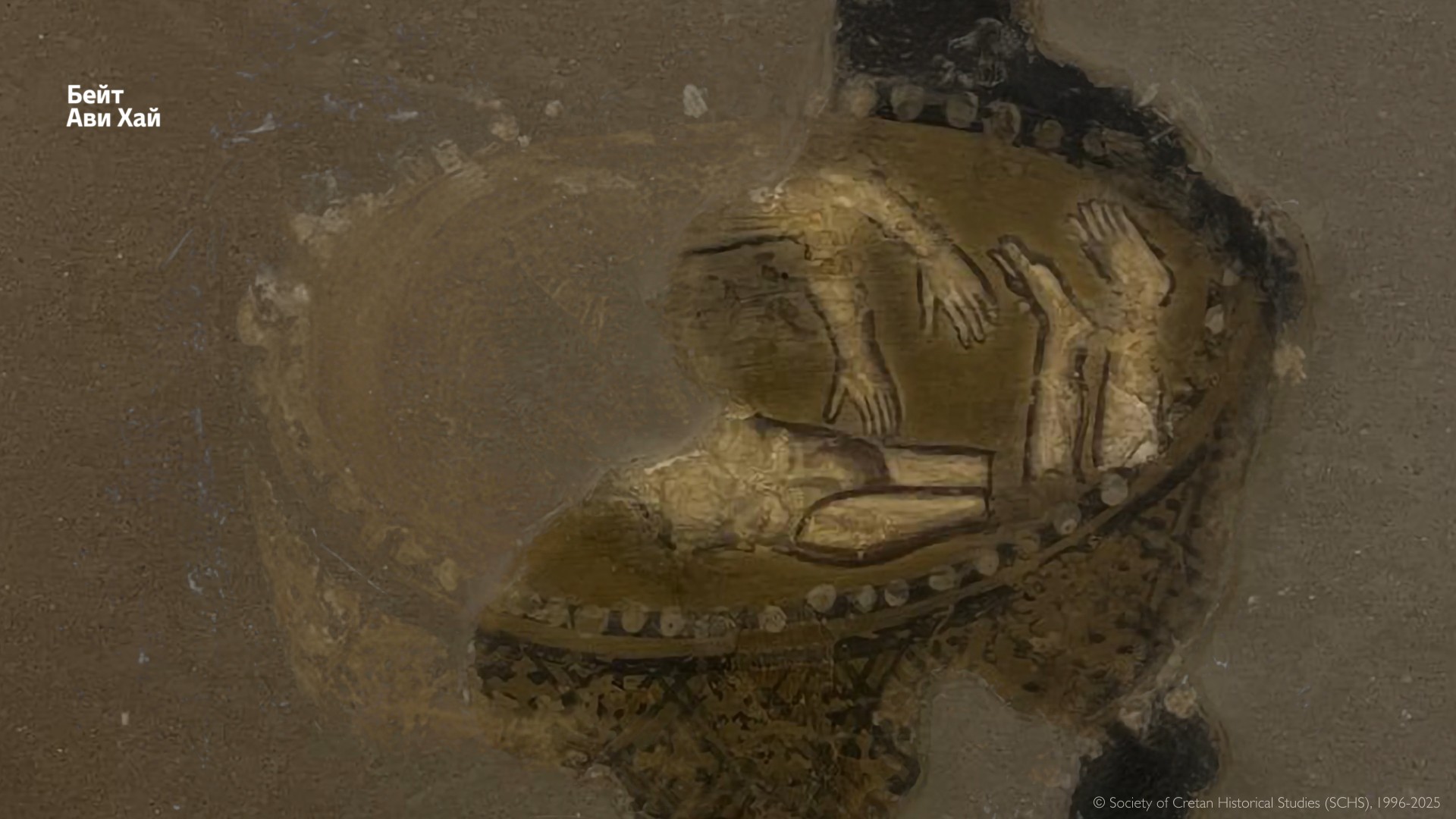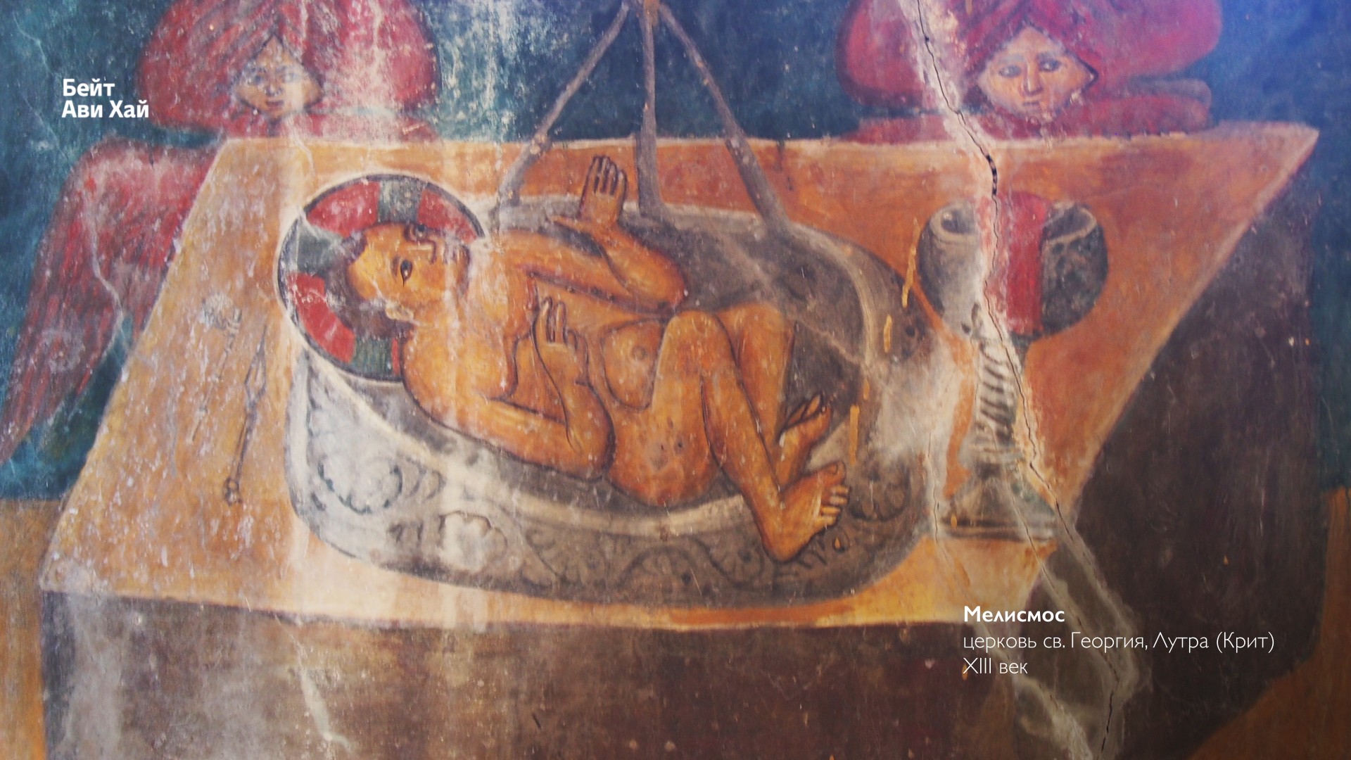 Этот едва уцелевший фрагмент фрески XIV в. из церкви св. Фотинии в критском городе Ираклионе демонстрирует очень нетривиальный сюжет.