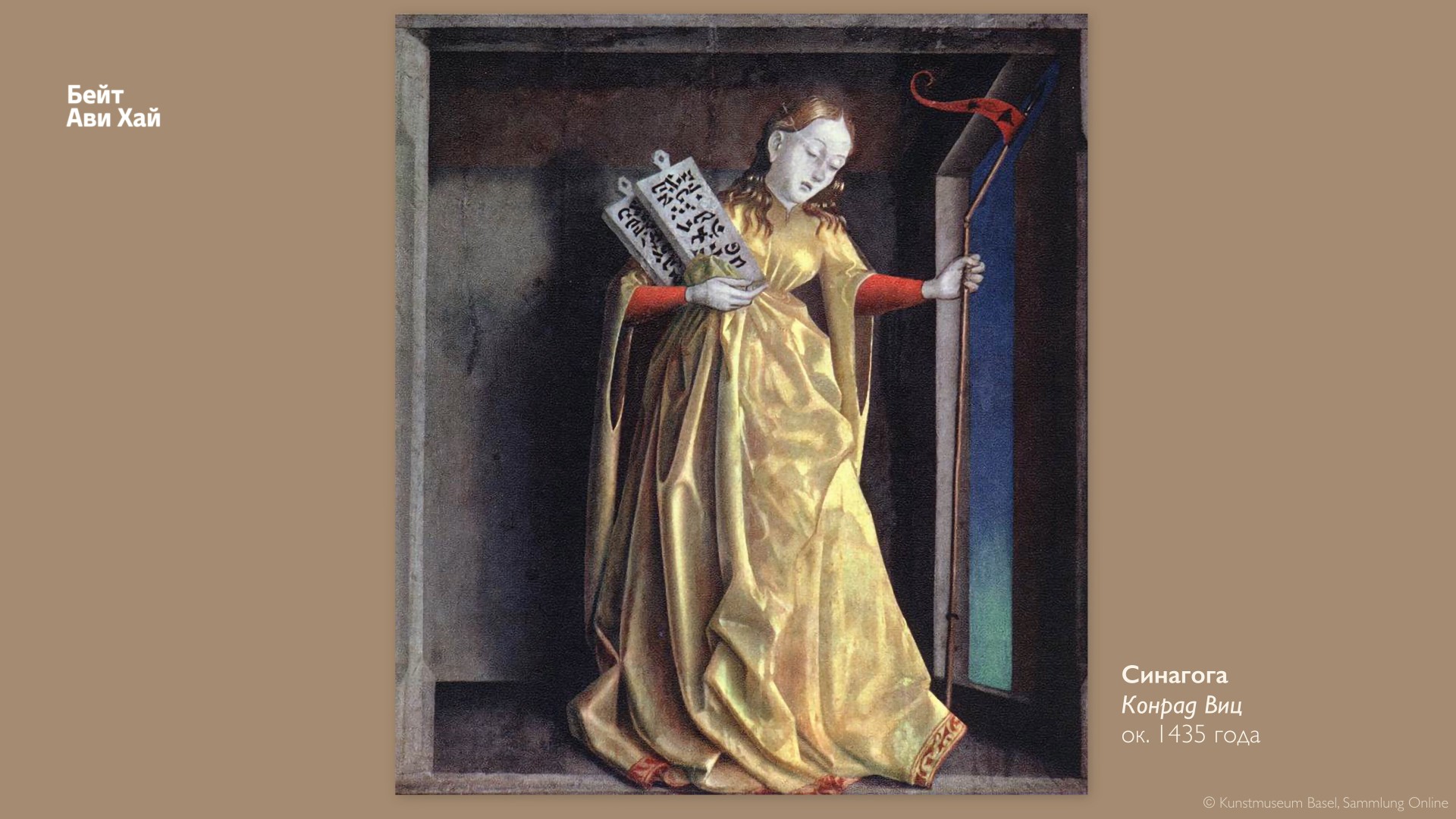Синагогу, персонификацию еврейского закона, облачали в длинный желтый хитон, а в руку ей тоже вручали желтый стяг.