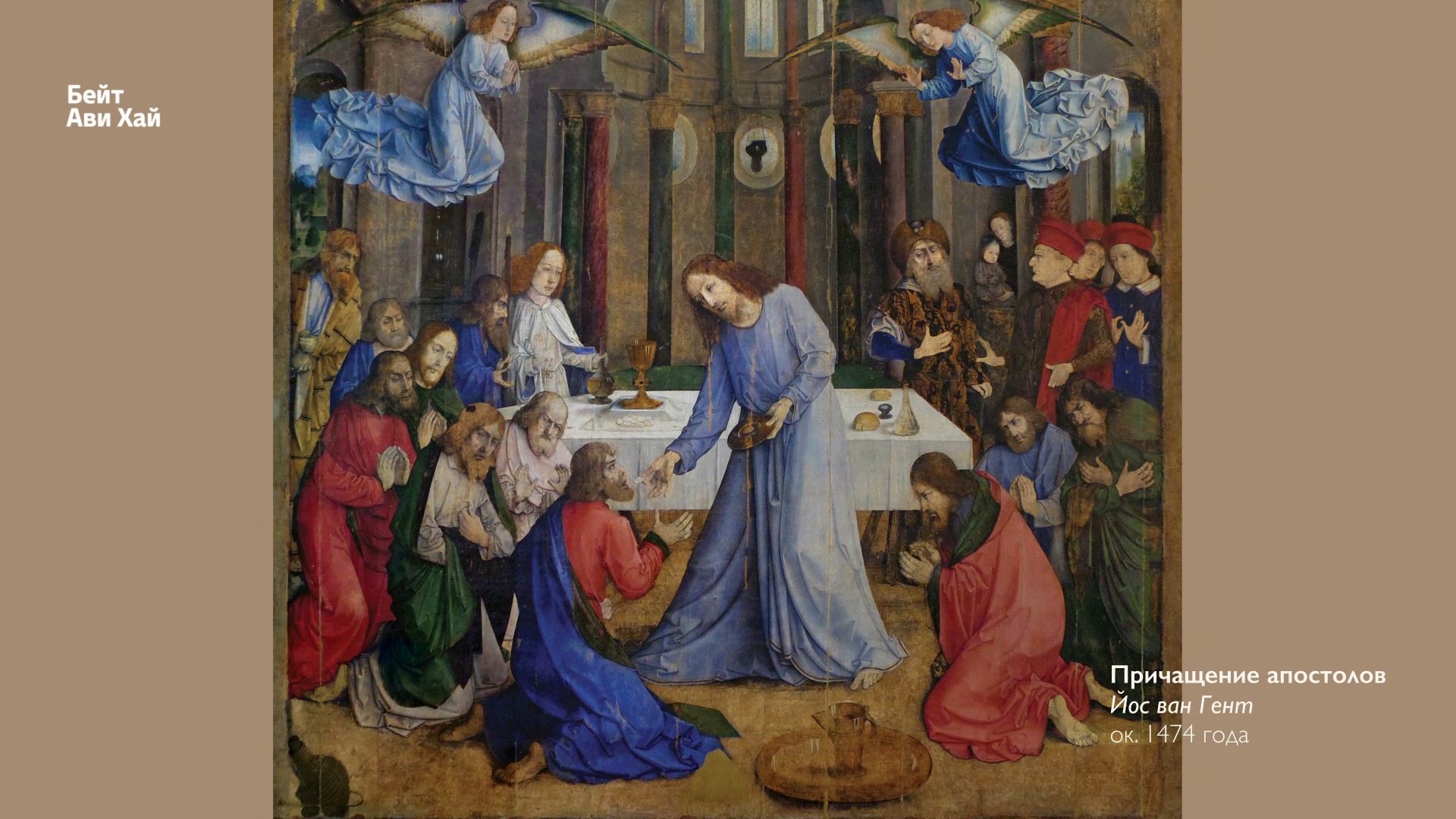 Около 1474 г. фламандский художник Йос ван Гент написал алтарный образ для часовни братства Тела Христова в городе Урбино.