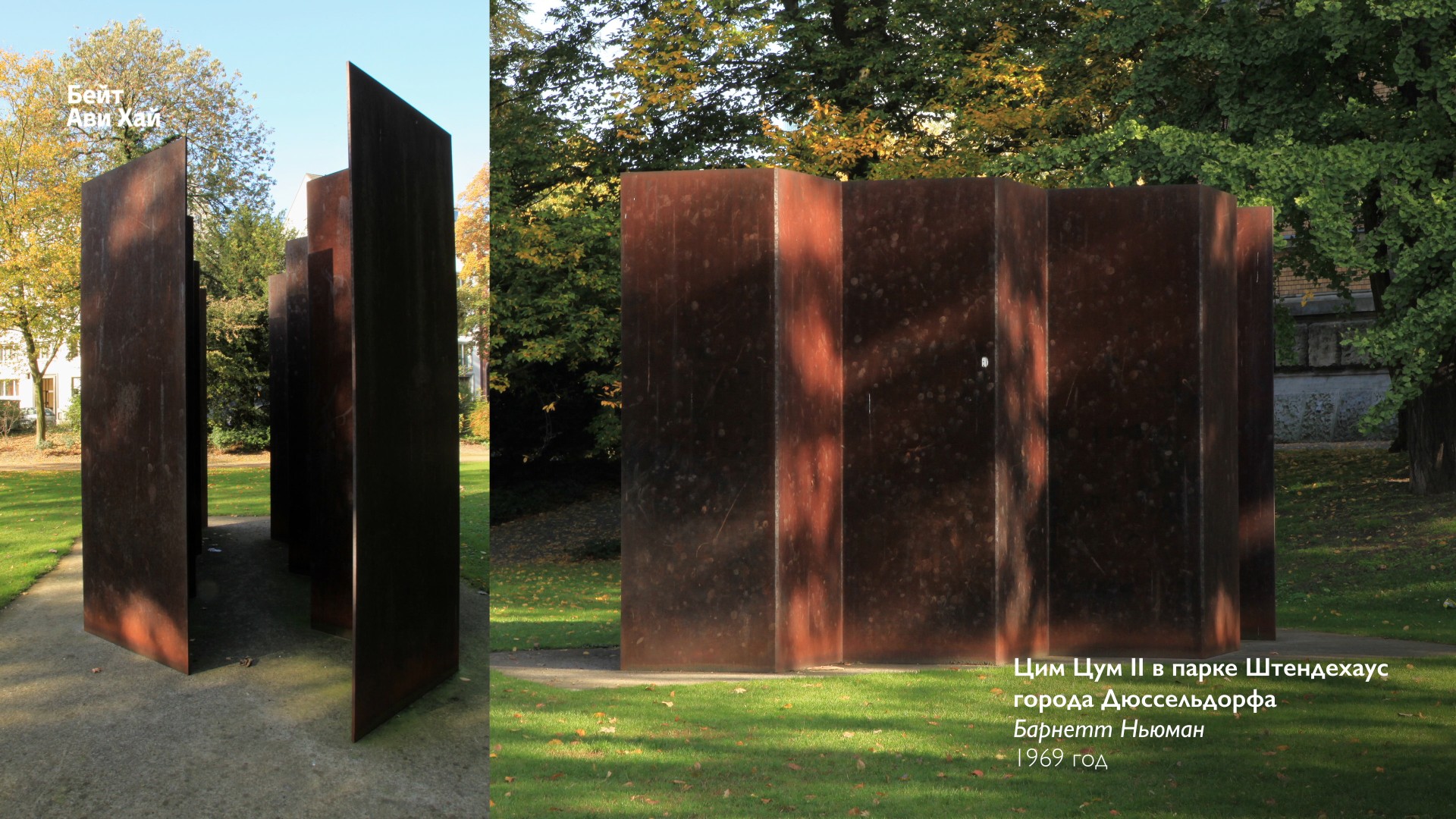 В коллекции фонда американского художника Барнетта Ньюмана хранятся фотографии и чертежи модели синагоги, которую художник спроектировал в 1963 году для выставки «Современная архитектура американских синагог». Раздвижные ширмы, выполненные из величественных зигзагообразных стеклянных панелей, создавали внутри пустое пространство, которое Ньюман описал каббалистическим понятием цимцум.