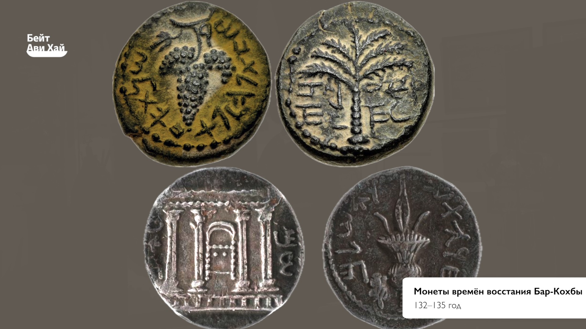 А восстание Бар-Кохбы в 132–135 годах принесло новые надписи — «Свобода Израиля», изображения храма, свитков, музыкальных инструментов.